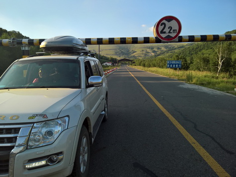去年呼伦贝尔牙克石,春节海南,先后挑战过2.3米限高杆,这次热阿线上成功挑战2.2米限高杆。 (在沈阳出发前就知道此限高杆,车内满载3大人1孩子,两侧踏板站4人,其中3个彪形大汉,对减震施压同时按压车顶箱顶盖,最后成功通过)
